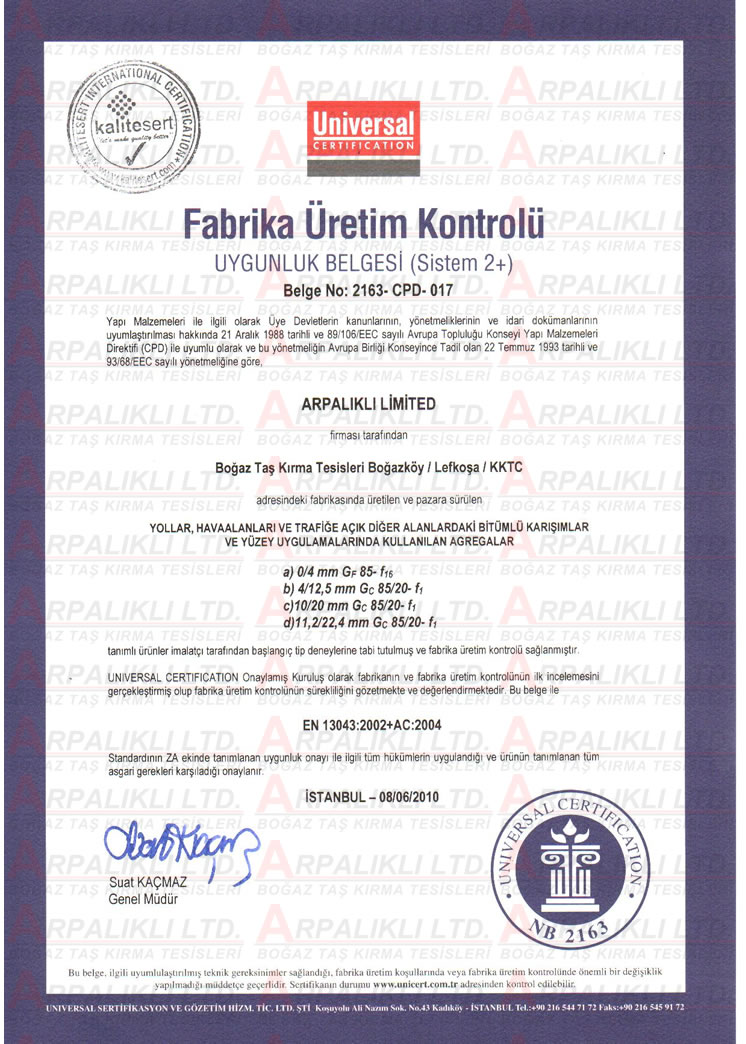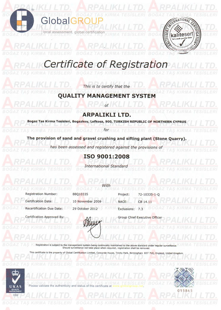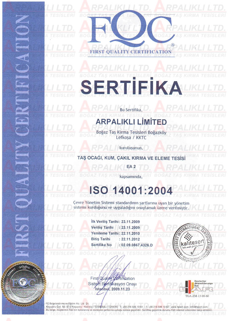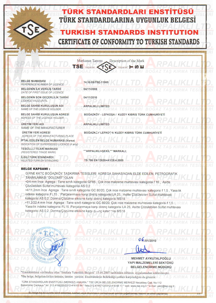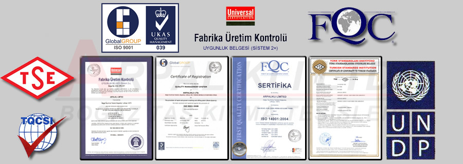 Şirketimiz üretim ve hizmetlerini uygunluk aldığı kalite standartlarına uygun yapmaktadır. Şirketimizin sahip olduğu kalite belgeleri aşağıdaki gibidir.