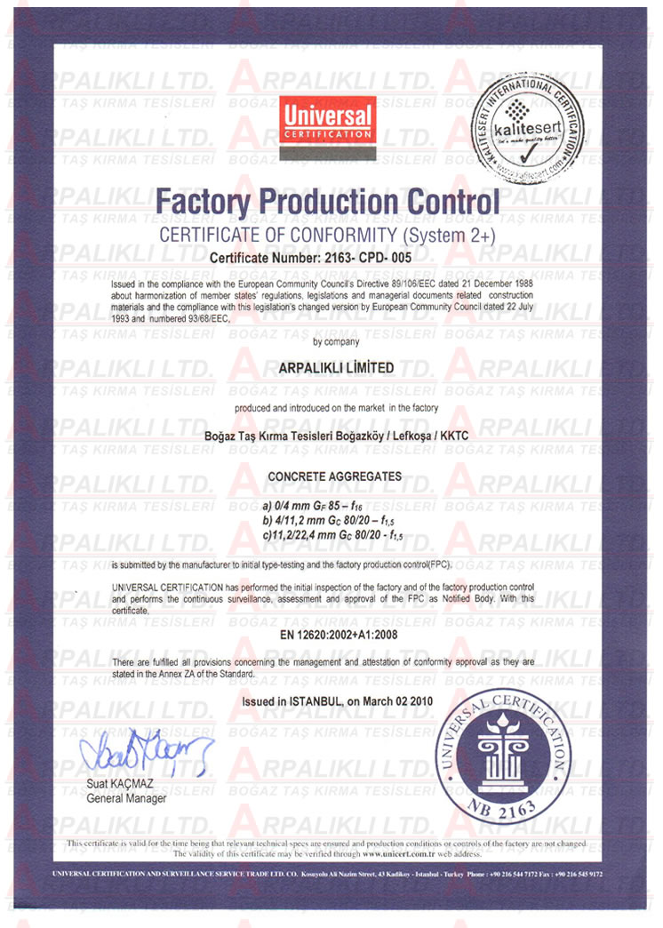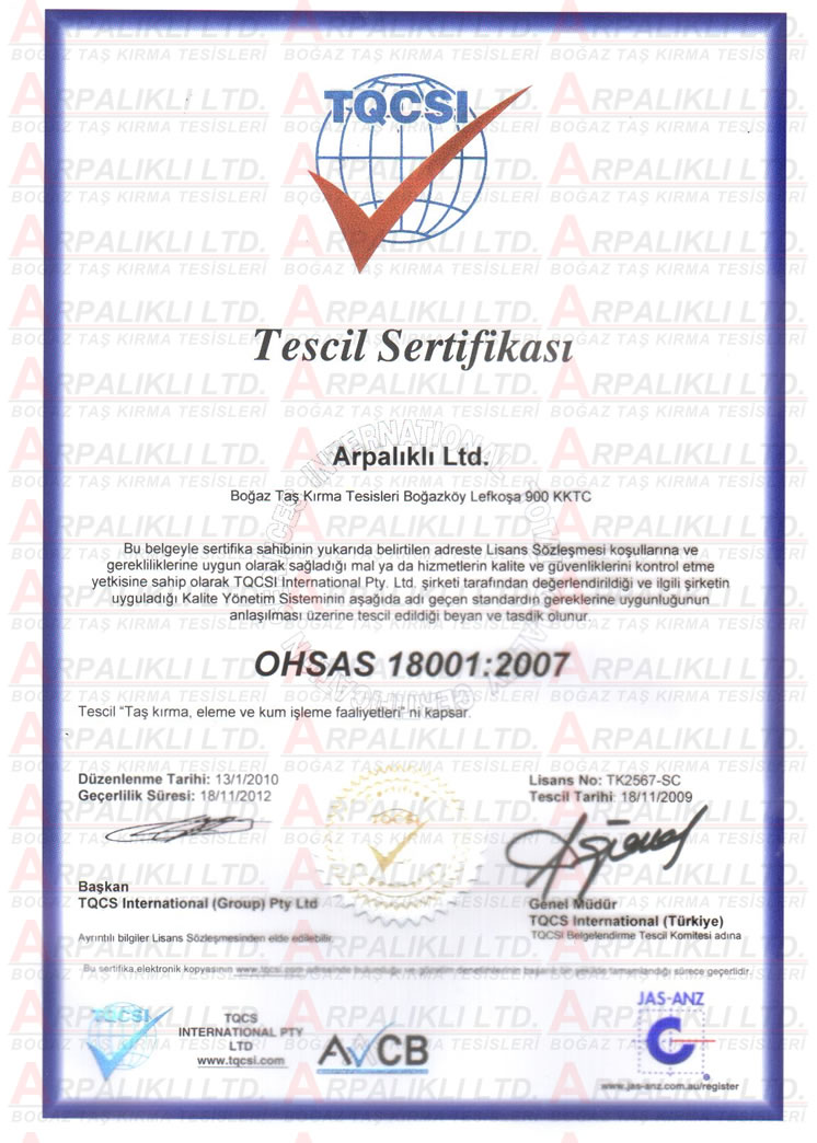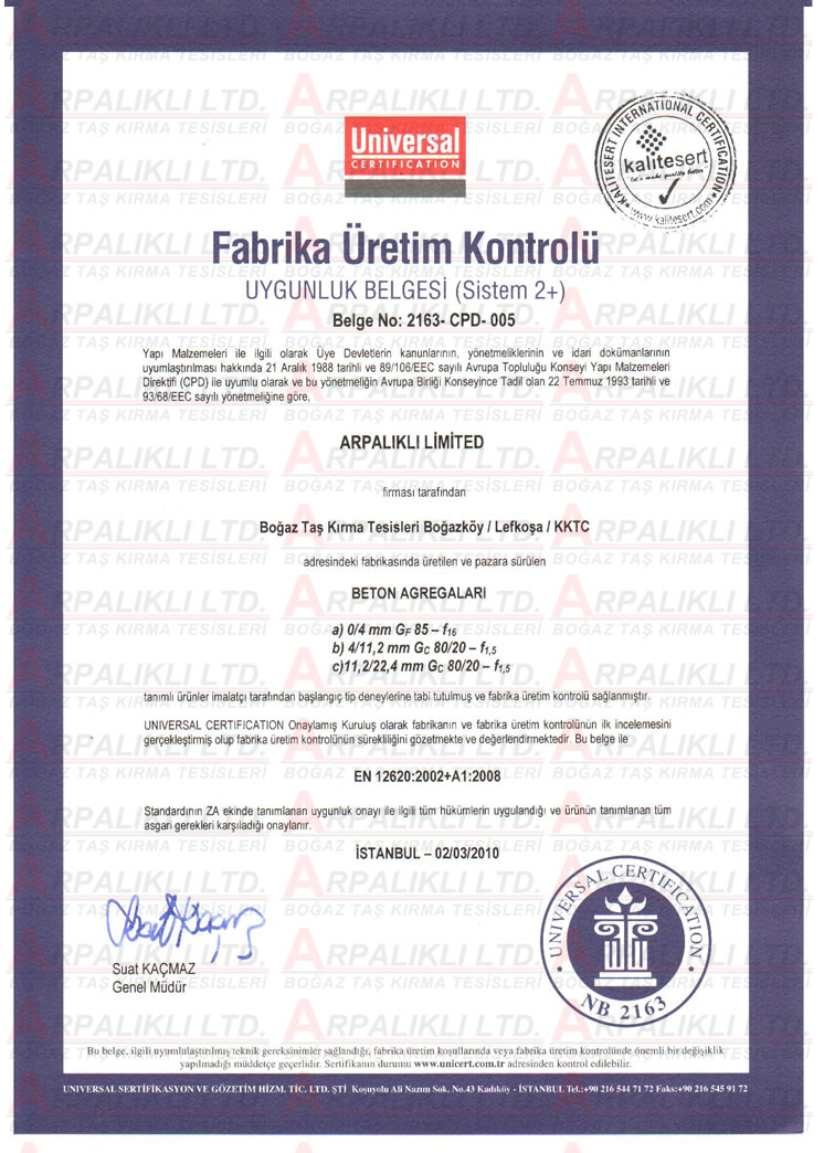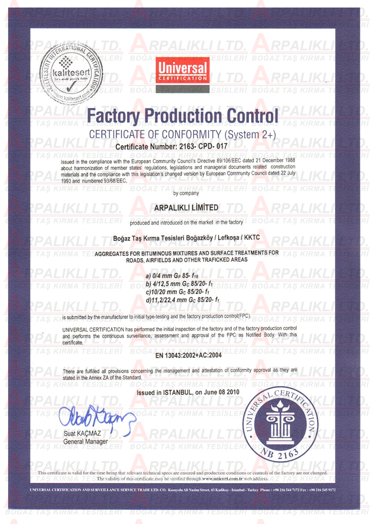 Şirketimiz üretim ve hizmetlerini uygunluk aldığı kalite standartlarına uygun yapmaktadır. Şirketimizin sahip olduğu kalite belgeleri aşağıdaki gibidir.